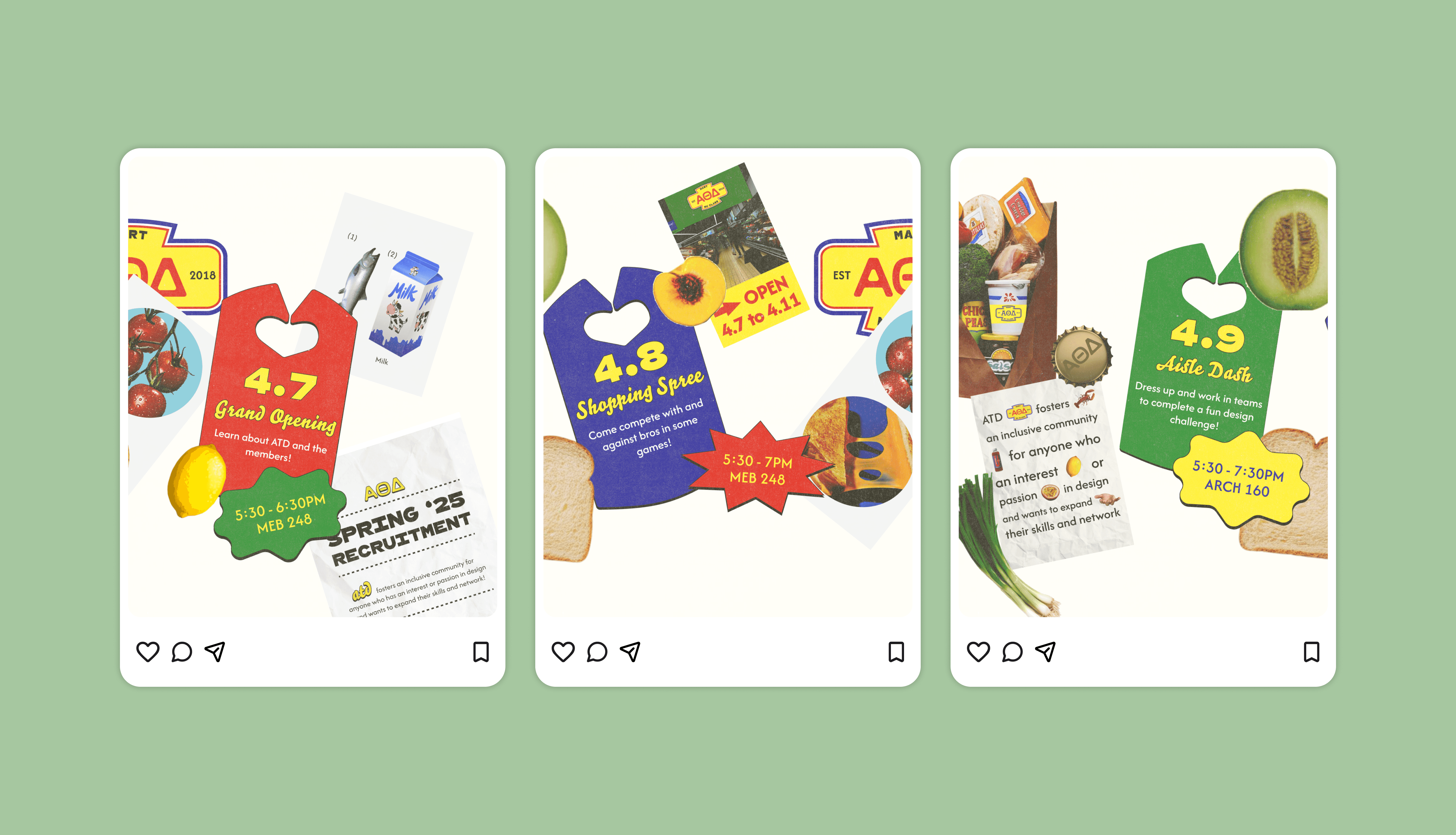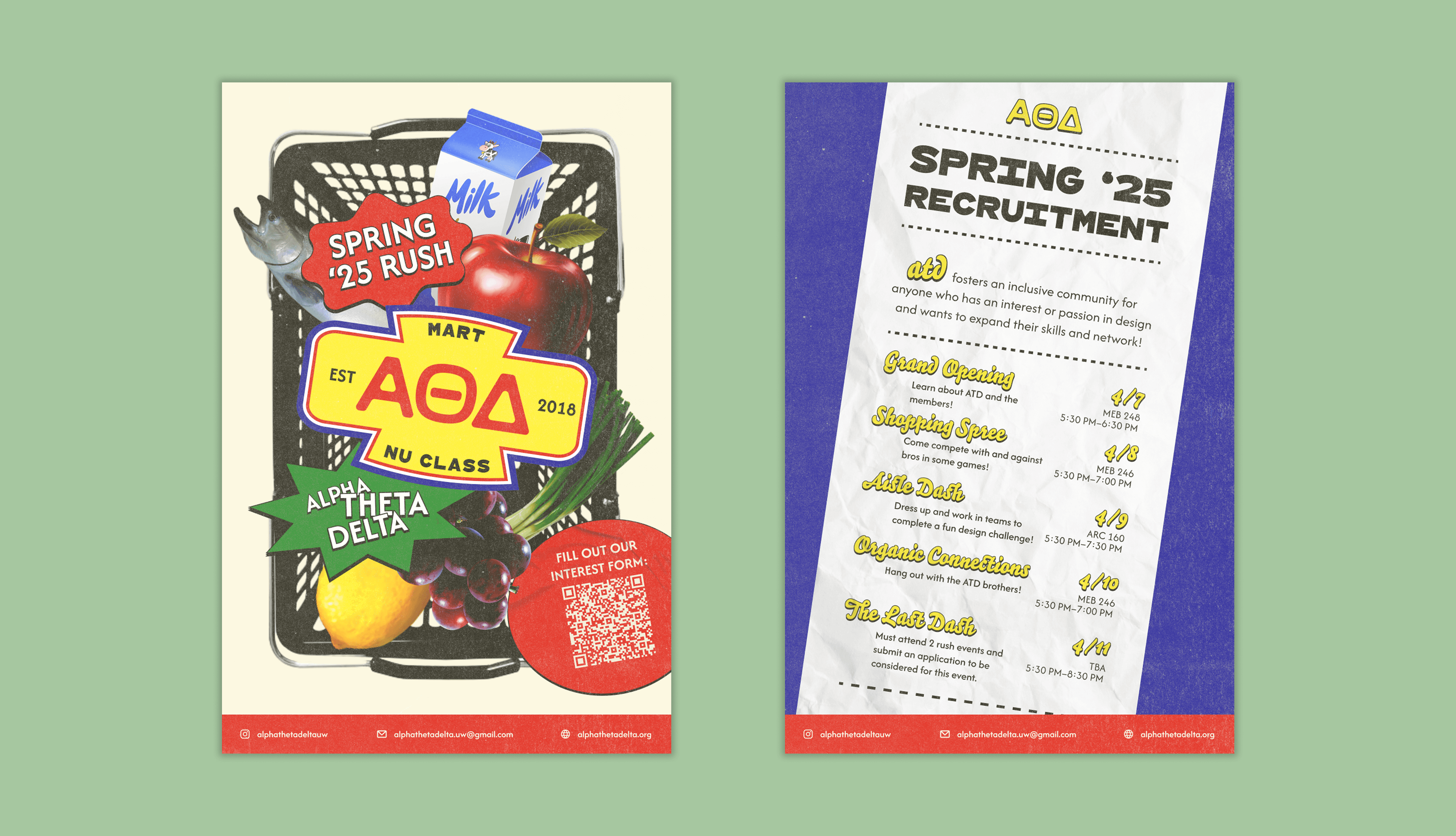 After exploring a number of themes, we settled on a recruitment theme of grocery stores. To fuel our creativity, we collected a collection of inspirational graphics and elements that fit our vision of what we wanted our promotional materials to look.